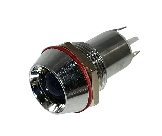 10MM LED IN CONCAVE CHROME PANEL MOUNT HOLDER, 12-VDC, FITS PANEL HOLE 16mm