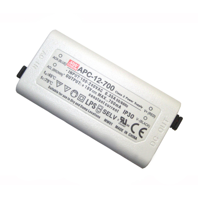 12 WATT CHASSIS MOUNT SINGLE OUTPUT SWITCHING LED POWER SUPPLY INPUT: 90-264VAC OUTPUT: 9-18V @ 700mA 12.6W, CONSTANT CURRENT