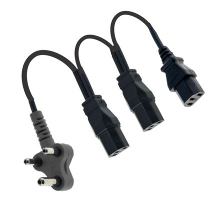 IEC COMPUTER POWER LEAD, SA 15A PLUG TO 3xIEC SOCKET, IN BLACK, 16A @ 250VAC. 1M-300mm-300mm
