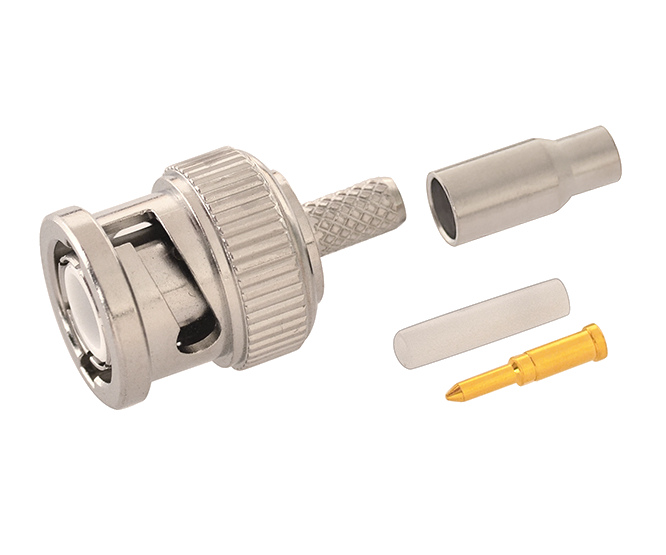 BNC CONNECTOR, TEFLON INSULATED, IN-LINE, CRIMP, GOLD PIN