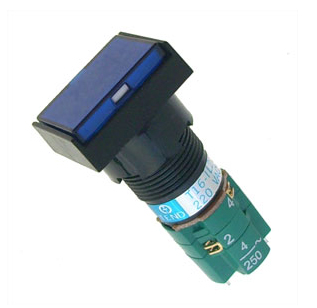 ILLUMINATED BLUE LATCHING RECTANGULAR PANEL MOUNT PUSH BUTTON SWITCH 1xNONC 250V 4A - WITH SOLDER TAGS
