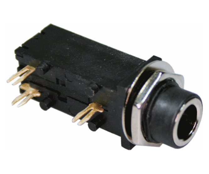 STEREO SOCKET/JACK, 6.3MM, PANEL MOUNT WITH SNAP-IN PCB PINS