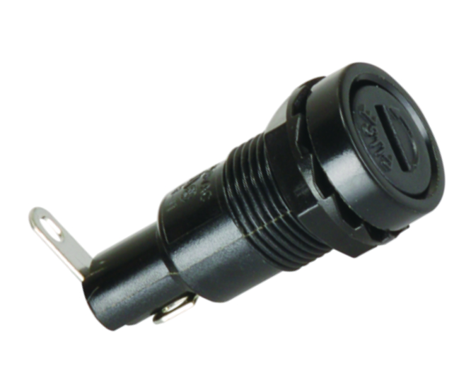 PANEL MOUNT FUSE HOLDER, FOR 5x20 FUSE, 10A 250VAC, FLAT SCREWDRIVER TO OPEN, SOLDER TERMINALS