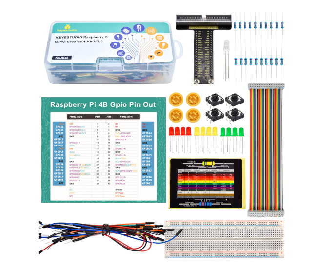 GPIO BREAK-OUT KIT FOR RASPEBERRY Pi 4 4b / 3 3b+ WITH SOLDERLESS BREADBOARD, GPIO CABLE, LED's, RESISTORS