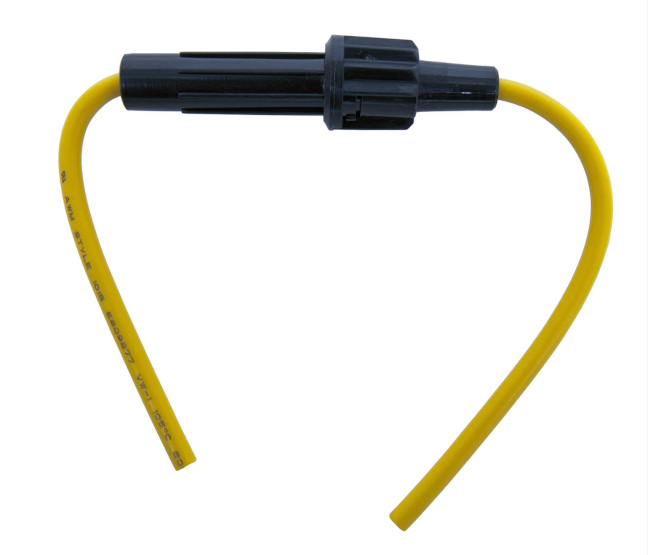 FUSE HOLDER FOR 5x20 FUSES, IN LINE, CLIP TYPE , FUSE OPTIONAL, YELLOW WIRE