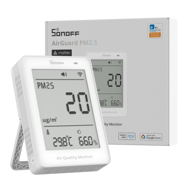 Memo     THE SONOFF AIRGUARD AIR QUALITY MONITOR WI-FI PROVIDES PRECISION TRACKING OF DUST AND SMOKE AT PM2.5, PM10 WITH BUILT-IN TEMPERATURE AND HUMIDITY SENSOR.