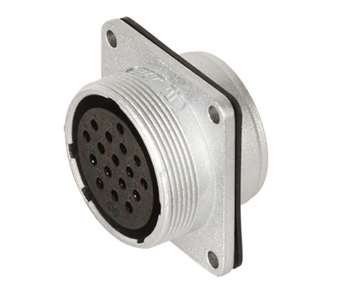 ROUND FEMALE CONNECTOR 17 WAY,FLANGE MOUNT WITH GASKETS, 10A, 250VAC SQU=35MM, PUSH ON TYPE MATES WITH M595725Q TO MAKE IN LINE & PANEL MOUNT CONNECTOR SET