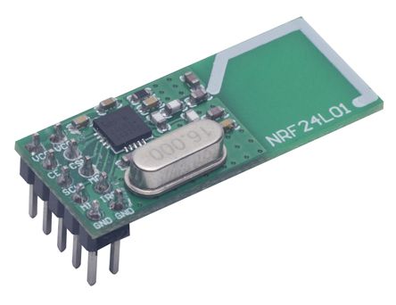 2.4GHz Wireless Transceiver Module, FOR ARDUINO AND BASED ON NRF24L01. Operating Voltage:3.3V(5V tolerant logic). Output Power: 1mW. Protocol:SPI Dimensions:33x14x9mm