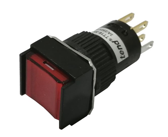 ILLUMINATED RED MOMENTARY SQUARE PANEL MOUNT PUSH BUTTON SWITCH 2xNONC 24V 1A - WITH SOLDER TAGS