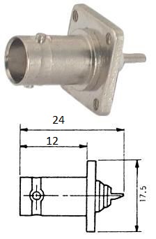 SOLDER TYPE BNC FEMALE CHASSIS MOUNT / FLANGE MOUNT 4-HOLES, 17.5x17.5mm SQUARE
