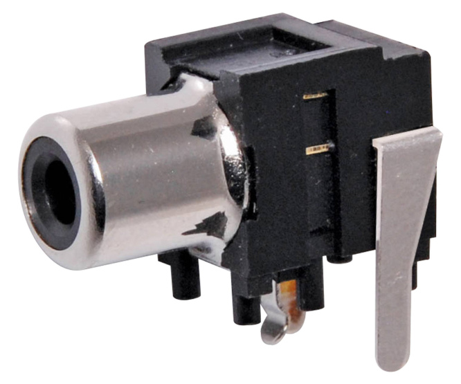 RIGHT ANGLE, PCB MOUNT RCA SOCKET, BLACK, 3-PIN