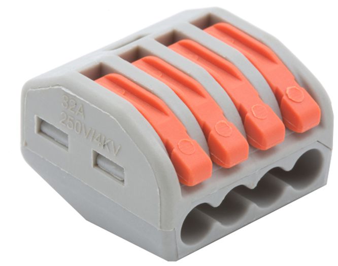 GREY BRIDGING / SHORTING CONNECTOR 4-POLE. FOR 0.08 TO 2.5mm2 SOLID OR STRANDED WIRE, 32A