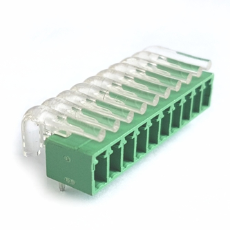 10 WAY RIGHT ANGLE PCB MOUNT PLUG-IN TERMINAL BLOCK WITH CLEAR PLASTIC FITTING / LIGHT PIPE