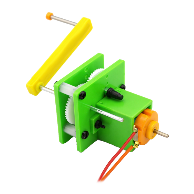 EDUCATIONAL / DIY CRANK / HAND MECHANICAL GENERATOR MOTOR. 40x40x55mm, 3V TO DRIVE LED ,UNASSEMBLED