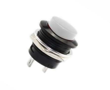 PANEL MOUNT PUSH BUTTON, SPST, NORMALLY OPEN, 3A 250VAC, FOR 16mm PANEL HOLE.
