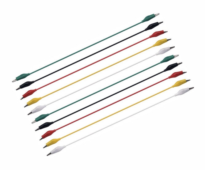 SET / ASSORTMENT OF 10 COLORED CROCODILE / ALLIGATOR WIRE LEADS.