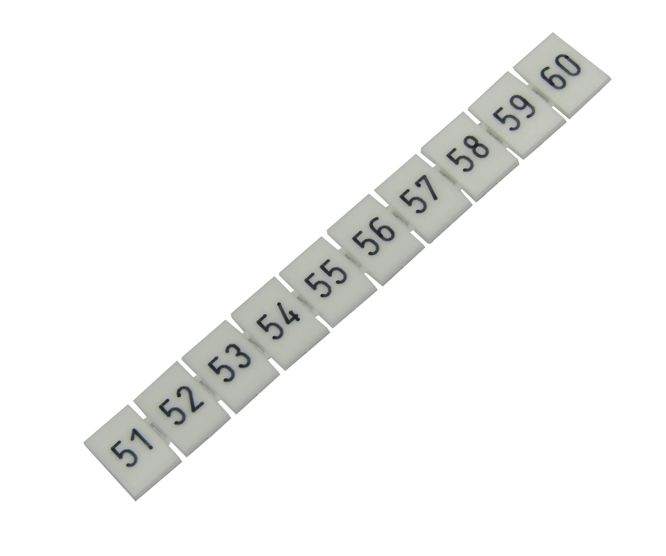 DIN RAIL MOUNT TERMINAL MARKER STRIP, 10-POLE, HOUSING PA66, NUMBERED 51 TO 60