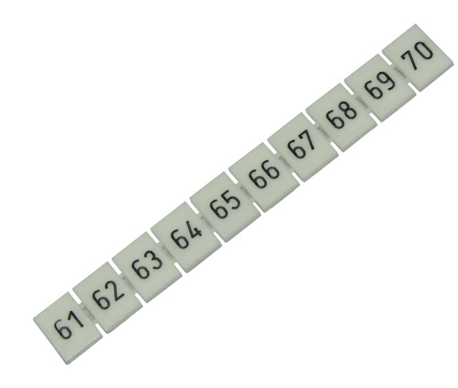 DIN RAIL MOUNT TERMINAL MARKER STRIP, 10-POLE, HOUSING PA66, NUMBERED 61 TO 70