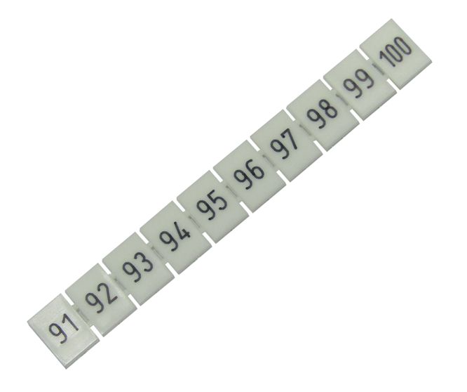 DIN RAIL MOUNT TERMINAL MARKER STRIP, 10-POLE, HOUSING PA66, NUMBERED 91 TO 100