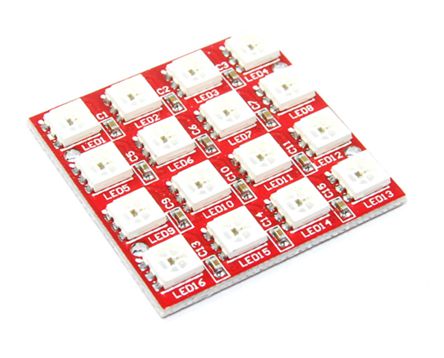 W2812 4x4 BIT 16BIT FULL COLOR RGB NEOPIXEL, 16 ADDRESSABLE LEDs, MODULE, RED PCB.