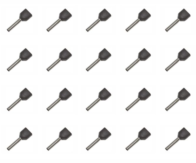 INSULATED BLACK TERMINAL, BOOT LACE, BLACK, FOR 2x1.5mm2 WIRES L1=12, L2=20 TWIN ENTRY. SOLD AND PRICED PER BAG OF 1Kpcs.