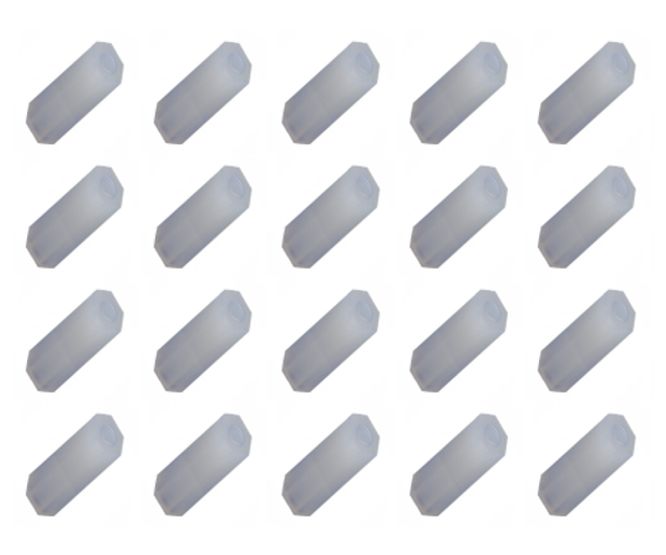 HEX PLASTIC THREADED SPACER, FEMALE TO FEMALE, M3, L=5mm, PRICED AND SOLD IN A BAG OF 1,000-PCS