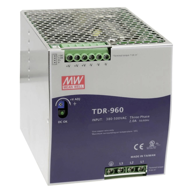 DIN RAIL MOUNT, THREE PHASE POWER SUPPLY. IN=3 PHASE 340-550VAV, OUT=24-28VDC @ 40A, WITH PFC.