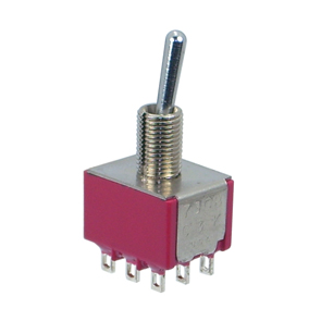 TOGGLE SWITCH, MINIATURE, 3PDT, ON-MOM, SOLDER TERMINALS