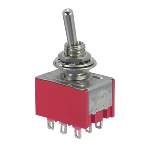 TOGGLE SWITCH, MINIATURE, 3PDT, 2 POSITION, ON-ON, STRAIGHT, 3A @ 250V