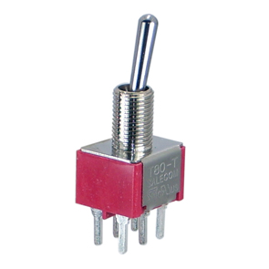 MINIATURE TOGGLE SWITCH, DPDT, ON-ON, 2 POSITION, STRAIGHT, 5A @ 125VAC / 28VDC, PCB MOUNT