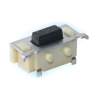 SIDE OPERATION SURFACE MOUNT RIGHT ANGLE TACTILE SWITCH / PUSH BUTTON, BLACK ACTUATOR 12V, 50mA
