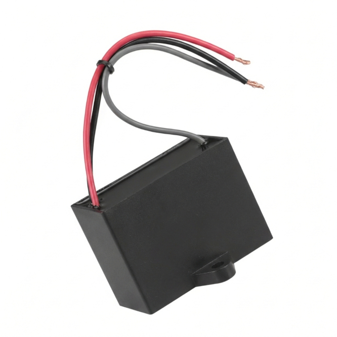 CAPACITOR FOR CEILING FAN MOTOR AND OTHER APPLICATIONS, 3 WIRE LEADS,