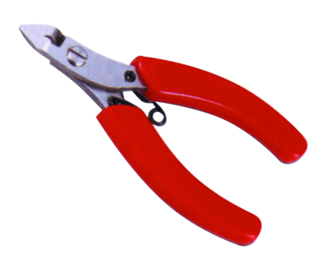 LOW PROFILE / MINI SIDE CUTTER PLIERS WITH RED HANDLES.