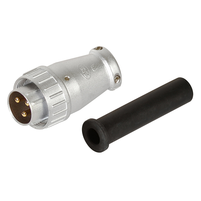 ROUND MALE CONNECTOR 3 WAY,WITH SLEEVE, 10A, 250VAC OD=22MM SCREW ON TYPE MATES WITH 203ADF TO MAKE IN LINE SET MATES WITH M595717B TO MAKE IN LINE & PANEL MOUNT SET