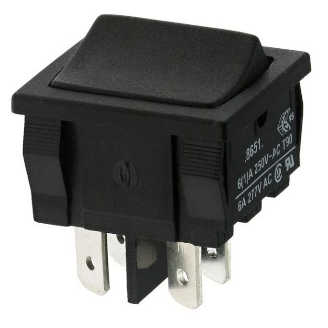 ROCKER SWITCH, DPST, MOMENTARY, OFF-(ON), 6A, 250V