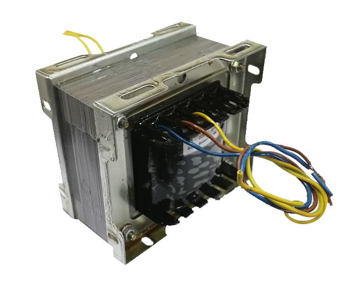 OPEN FRAME, WITH LOOSE WIRE LEADS, DOUBLE WOUND MAINS POWER TRANSFORMER. PRIMARY=0,220,SCREEN SECONDARY=0,15V, L=117mm W=92mm H=92mm, 72mm HOLE TO HOLE LENGTH