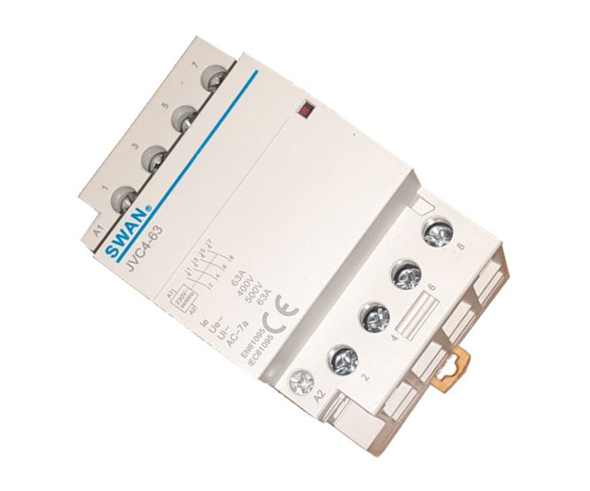 DIN RAIL MOUNT MODULAR CONTACTOR. FOUR NORMALLY OPEN ( 4xNO )CONTACTS RATED 63A 500V.