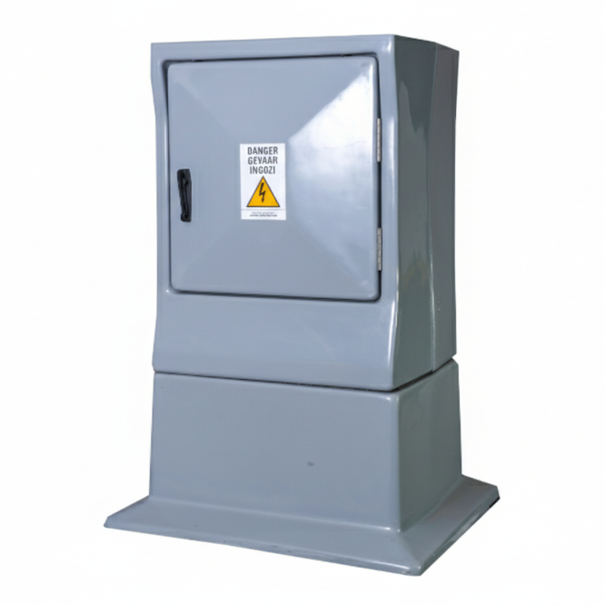 12 WAY DOUBLE DOOR LOCKABLE, FREE STANDING METERING KIOSK / DISTRIBUTION BOARD WITH REMOVAL BASE AND REMOVAL FRAME