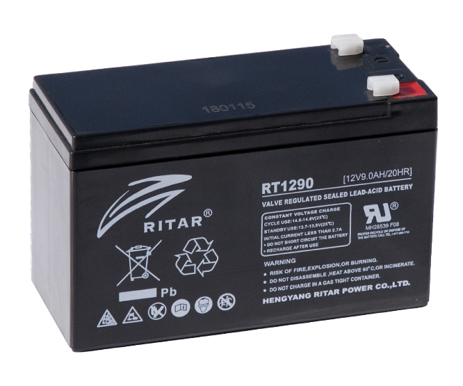 MAINTENANCE FREE, 12V 9AHr SEALED LEAD ACID BATTERY WITH F2 TERMINALS SPADE 6.35mm,(10/BOX)