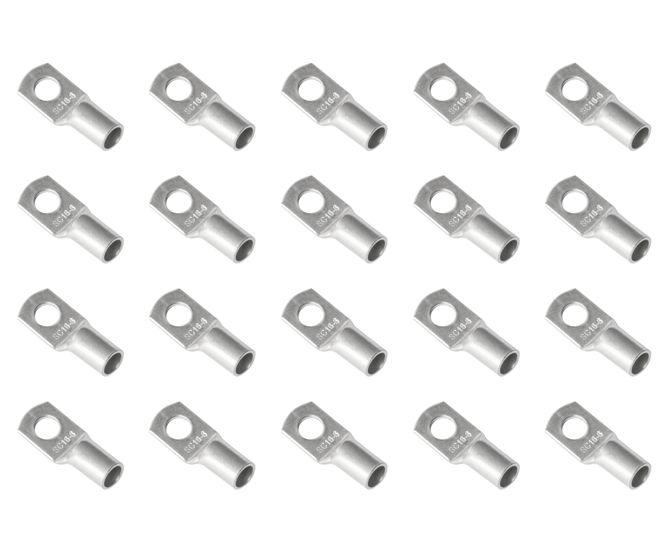 COPPER TUBE NON INSULATED CRIMPING TERMINAL RING LUG FOR 16MM2 CABLE. HOLE DIA=6.4mm. PRICED AND SOLD PER BAG OF 250 PIECES