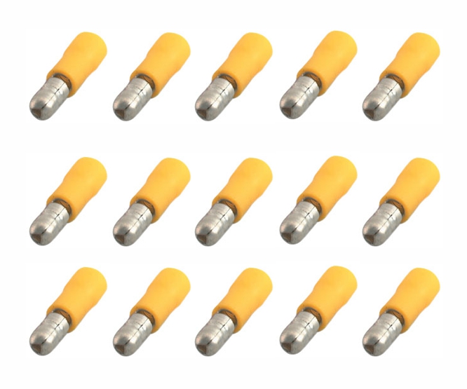 PRE-INSULATED 5.0mm MALE BULLET CRIMP TERMINAL - YELLOW 4-6mm2 WIRE. PRICED PER PIECE, SOLD 100pcs MIN.