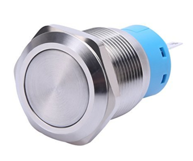 DOME HEAD STAINLESS STEEL VANDAL/WATERPROOF ROUND MOMENTARY, RING ILLUMINATED , 1xNORMALLY OPEN, 1xNORMALLY CLOSED, PUSH BUTTON SWITCH PUSH-ON TERMINALS 5A/12VDC - 5A/250VAC, IP65, FITS PANEL HOLE OF 19mm