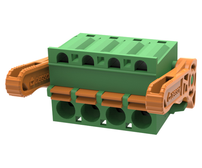 PLUGGABLE TERMINAL BLOCK, 4 WAY, GREEN, PITCH=5.08mm, 20A 320V PUSH-IN / SPRING LOADED CONNECTION