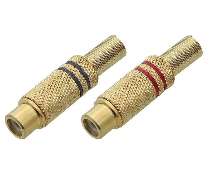 SET RCA SOCKET IN-LINE METAL GOLD RED & BLACK