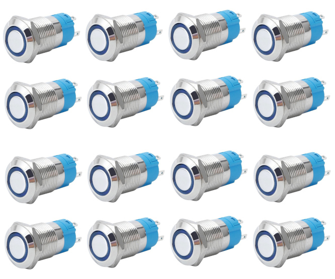 PUSH BUTTON SWITCH NO/NC SPDT 5A 12V M19 D=22 L=35 MOM BLUE - 40/BOX
