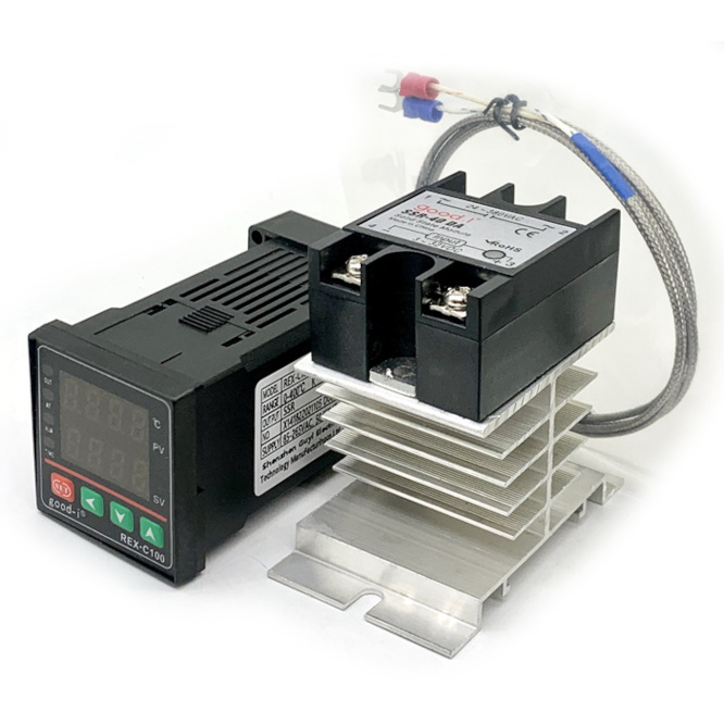 PID TEMPERATURE CONTROLLER KIT, INCLUSIVE OF SOLID STATE RELAY, HEAT SINK, 1m THERMOCOUPLE TEMPERATURE PROBE. 85-265VAC, 40A, 0-1300-DEGREES CELSIUS.
