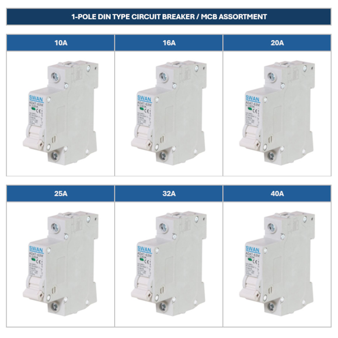 ASSORTMENT OF 12 DIN 1-POLE 3KA CIRCUIT BREAKERS 10A-40A