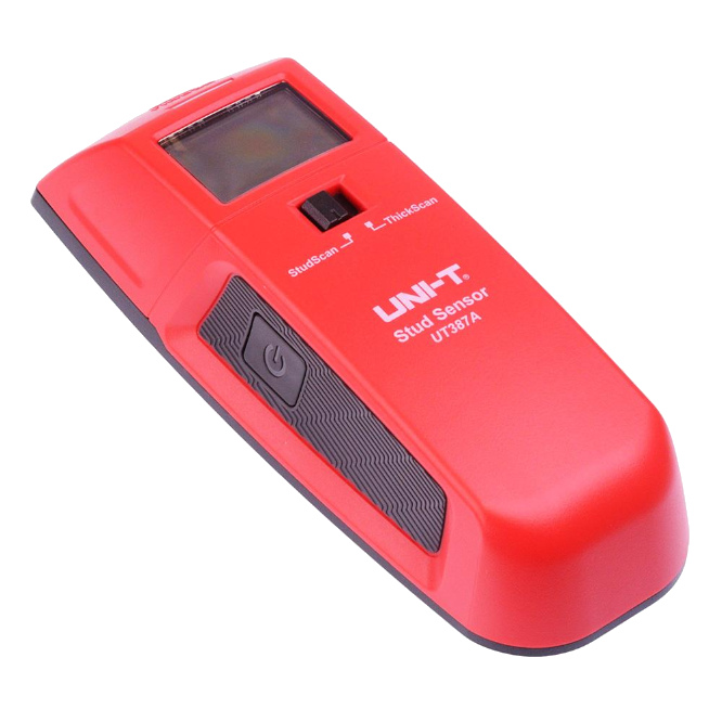 STUD SENSOR, MAINLY USED IN DRYWALL APPLICATIONS, CAN DETECT METAL (20MM), WOOD STUD (38MM) AND LIVE COPPER CONDUCTORS (51MM) HIDDEN IN THE WALL, BEEPING PROMPT, DUAL COLOUR LED WITH LCD DISPLAY, AUTO POWER OFF, LOW BATTERY INDICATION, 1 METER DROP TEST, ERROR CALIBRATION ALARM. CE CERTIFICATION.
