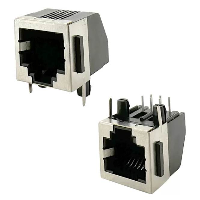 SEMI SHIELDED MODULAR FEMALE TELEPHONE CONNECTOR PCB MOUNT RIGHT ANGLED, 6 PIN 6 CONTACTS , RJ-12